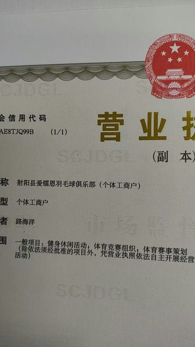 热烈注册我司羽毛球俱乐部正式成立,并通过工商注册